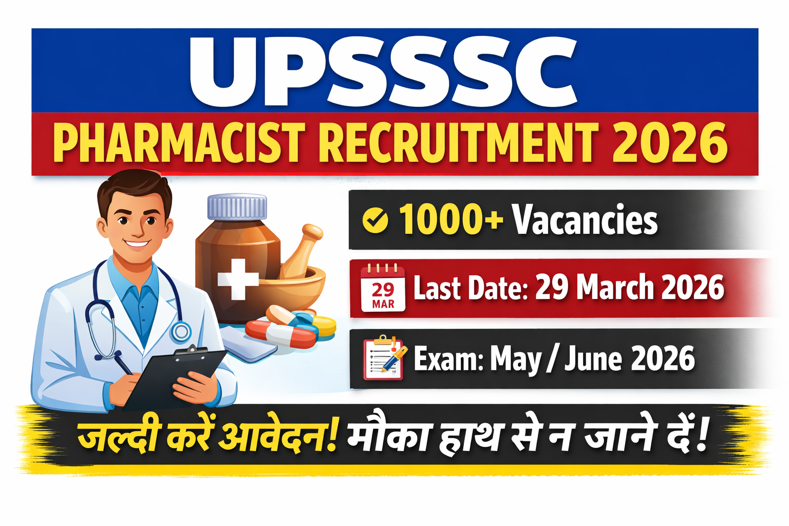 UPSSSC Pharmacist Recruitment 2026: Last Date 29 March | 1000+ Vacancy – Apply Fast